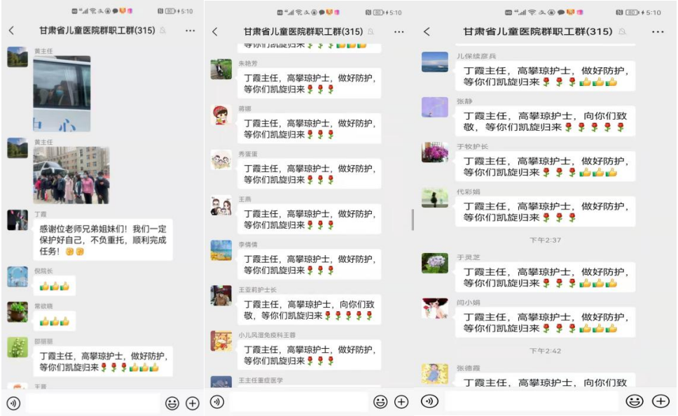 昔日朝夕相处的姐妹即将义无反顾投身到抗击疫情的前线,同事、朋友们纷纷来送行。一次次温暖的拥抱、一双双不舍的眼眸、一句句深情的叮嘱,是我们对战友的鼓励和期盼,很多人因为触动了内心深处的柔软与细腻,不禁偷偷抹起了眼泪。儿童医院职工微信群里更是满满的正能量,不断有人回复消息,为2位抗疫先锋加油打气,希望她们一定要保护好自己、勇担健康使命,坚守医者初心、平安凯旋归来。