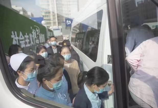 一时间,这座城市变得很安静,仿佛被按下了暂停键,疫情形势严峻,病毒无情,人有情。2021年10月21日,下夜班的我接到了医院紧急集合的号令,需要我们第一时间支援兰州核酸采集点完成采集工作,同行的还有一起下夜班的景至颖和正在休假的白豆,郑霞霞。匆忙准备后,我们登上了去往采集点的汽车,天气很好,但我们内心些许有些复杂,“战斗”的号角已然吹响,我的城市多久才能好起来呢?疫情情况到底如何?来不及多想,我们的车已经开到了采集点,要立即开展核酸采集工作。