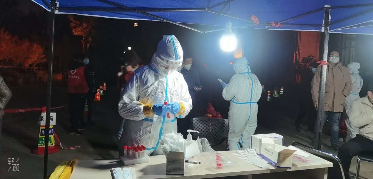 很快,我投入到了万达采集点井然有序的核酸采样工作中。穿好防护装备之后,和社区的工作人员完成了交接。排队的人特别多,内心压力很大,但每一位群众都积极配合我们的工作,现场志愿者和安保人员也很负责,耐心指导年龄大的民众提前准备好健康码、身份证等,使采集工作得以顺利进行。连续七个小时的采集工作,工作量很大,但伴随着一声声的感谢,瞬间使我们觉得很温暖。