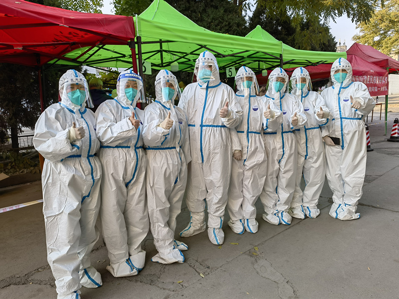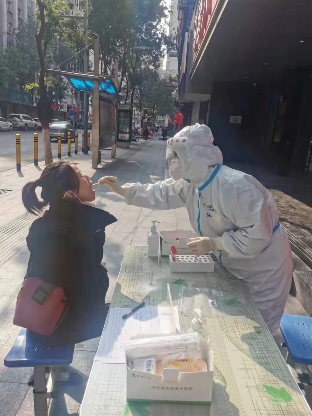 到达张苏滩社区采集点后,所有采集人员按分组快速有序的开始检测,从21日下午2点持续到22日凌晨,从22日早8点到下午5点,每一份采样都在有序分工、默契配合中这样进行着。为了避免频繁如厕反复穿套防护服、戴面屏浪费时间,采集人员工作期间坚持不吃不喝;队员们在防护服下汗流浃背,手指却因每个标本采完之后的酒精手消而在寒夜里冰凉麻木。即使如此,每个人依然坚持不懈的完成着自己的工作。夜越来越深,气温越来越低,附近居民主动送来的兰州烩菜、热冬果,以及科室同事送来的衣物打动了每个人的心,着实让那寒冷的夜有了浓浓的暖意。