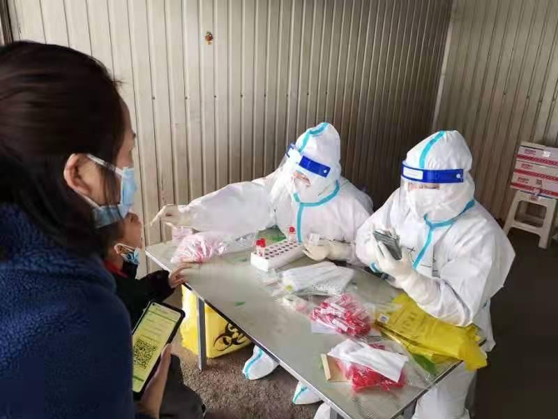 紧急集合后,与科室其他7位战友们一起奔赴战场,开始打响属于我们的战斗。我们被分配到不同的小区紧张有序的开展核酸采集工作。扫码、双人核对信息、贴标签、采集、放置标本、手卫生……不断重复着每一个环节,不敢懈怠。虽然等待采集核酸的人们排着长长的队伍,但是我们的工作井然有序的进行着。在采集的过程中,也不知道有多少句“谢谢”“你们辛苦了”飘进了我的耳朵,虽然外面的天气很冷,身体很累,但是听到感谢的话语心里很暖很暖。