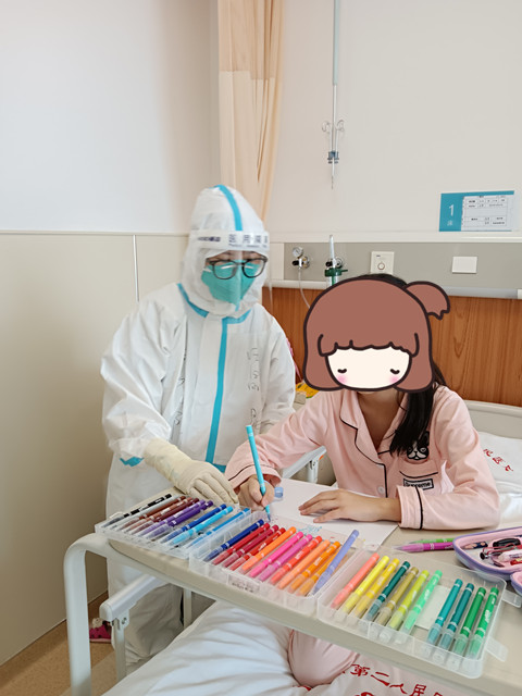 就这样,田晶晶成了姐妹俩在隔离病房的“临时妈妈”,初次见面的姐妹俩对这个特殊的妈妈有点不知所措,田晶晶从孩子们稚嫩的眼神中看出了她们的紧张不安,“姐姐妹妹,我是田阿姨,我想和你们交个朋友,我看你们这么可爱像两个小公主,我可以叫你们安柏和索菲亚吗?”姐妹俩一听到动画片中的人物便很兴奋,很快就和这个“临时妈妈”熟悉起来。