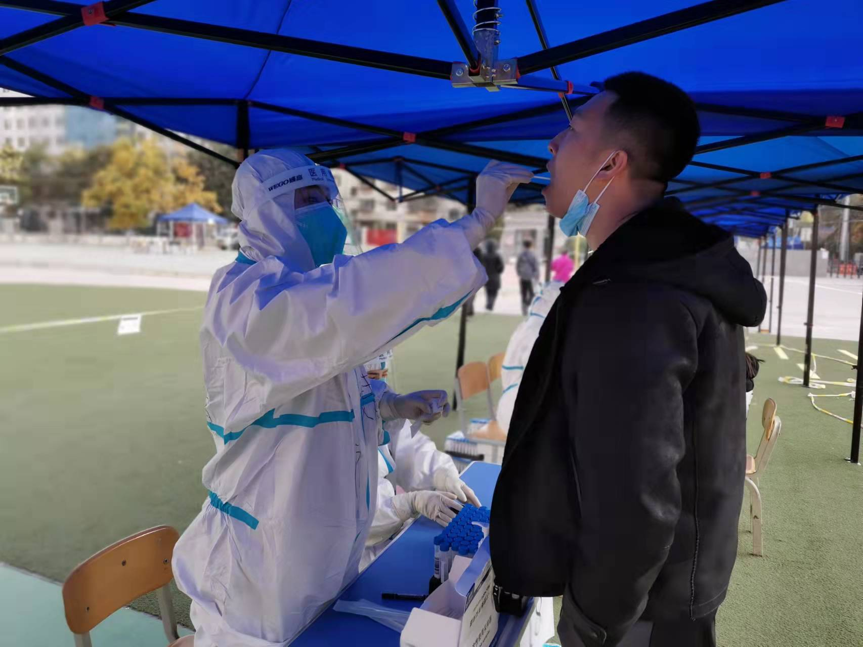10月21日中午,我接到医院通知,与家人进行简单嘱咐后匆匆赶到医院,来到行政楼门前,看到许多并肩作战的姐妹都来不及换上厚衣物,来不及吃一口热饭,匆忙踏上前往核酸采集点的大巴车,每个人都是坚定而勇敢的,那一刻我真真切切的感受到了舍小我,保大家的意义。