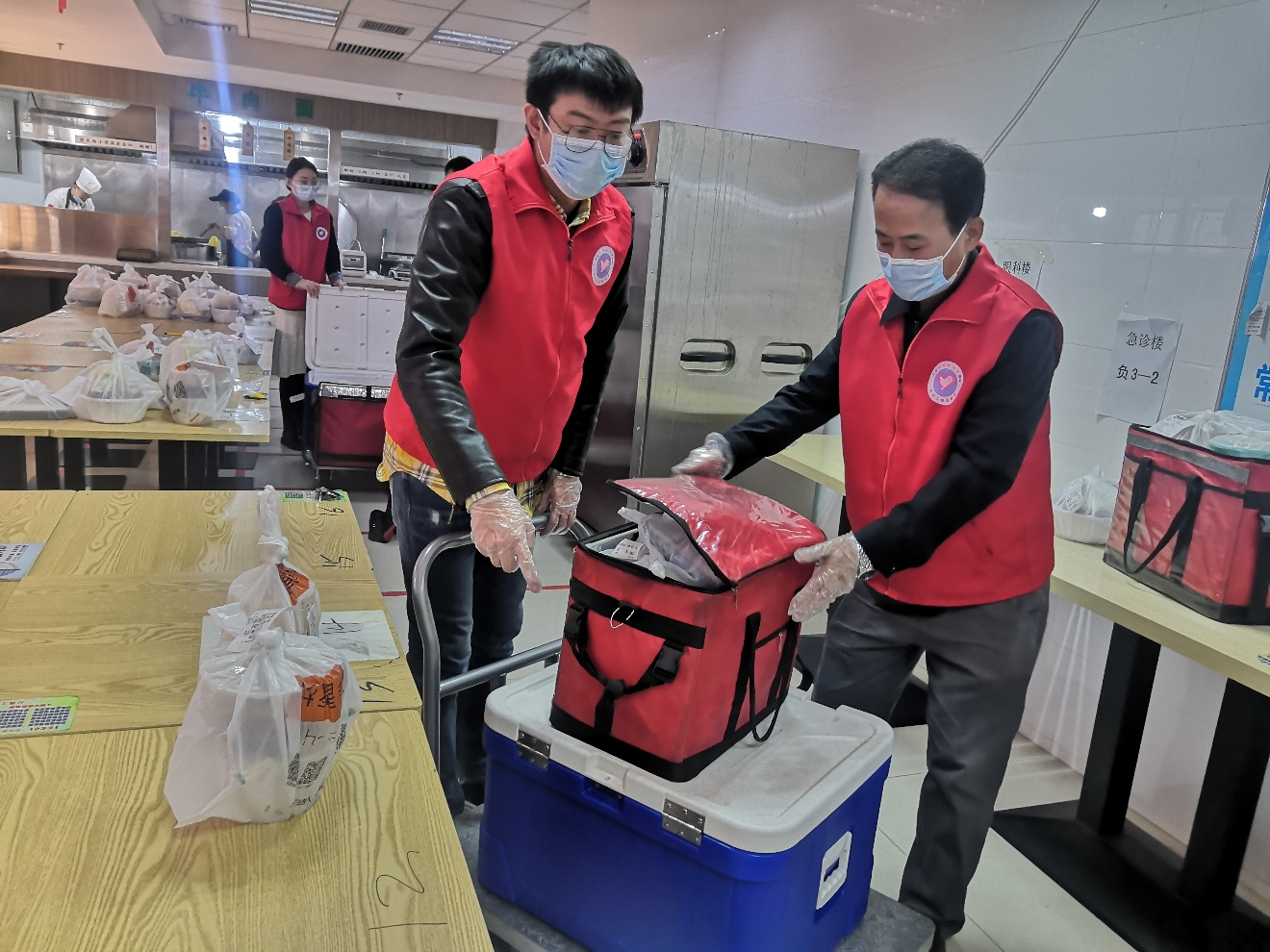 同时,为满足患者及医务人员用餐,后勤保障处制定了医护人员、病员及陪员订餐送餐的标准化流程,在充分征求各方面意见后采用二维码形式进行扫码订餐,由后勤保障处职工组成志愿队,为所有医护人员及患者病员统一配送餐食。