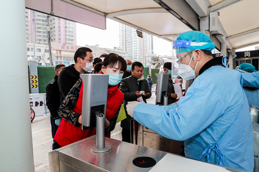 预检分诊是防疫的“哨兵岗”,也是抗击疫情的第一道屏障,更是整个疫情防控最重要的环节之一。“医院在门诊入口处总共设有23台闸机通道,其中包括18台普通患者入口通道,5台职工入口通道。智能闸机平台依托疫情防控安全检查系统,利用人工智能技术实现了身份证识别、人脸识别、健康码效验、体温检测、自动监测拦截、后台数据追溯等核心功能,通过刷码、刷证、测温、智能化系统一次性确认,安全高效完成预检分诊工作,让预检分诊工作多一层防护、少一份隐患。考虑到老年机、证件不全、残疾病人等特殊患者群体的需要,医院专门设置了无障碍通道,进行人工验证。”预检分诊团队负责人、院工会副主席赵成钢介绍说。