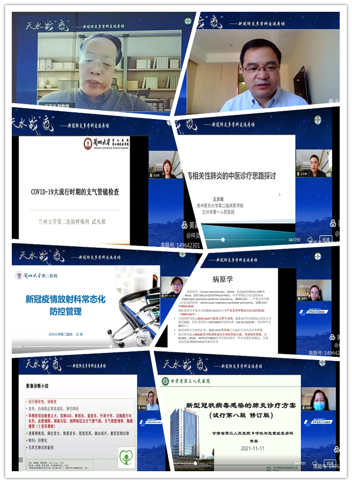 会上,石军年、赵建洪、呼吸内科副主任医师武凡祺、放射影像科主管护师王瑛及其他省级新冠肺炎医疗救治专家组(天水市)成员从影像、呼吸、重症、小儿、中医、护理等专业领域对新冠肺炎进行了专题讲座和诊疗经验分享,天水市影像同仁做了影像病例解读。