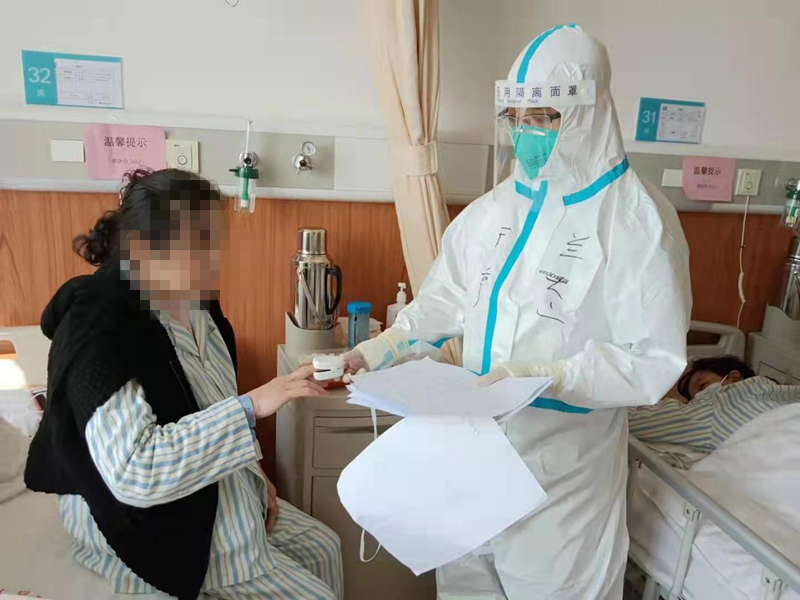 我所在的新一科病区里年龄最大的是80岁,年龄最小的才8岁。10月26日夜里,我来到新一科病区。错综复杂的疫情,难不倒我们,疫情让五湖四海的陌生人住到了一起,我们白衣战士也是来自兰州市內各医疗机构,平时素未谋面,此刻疫情让大家团结在一起,配合起来行云流水。医师三个人一组,共5组,每组设立小组长,大家24小时轮班。我所在小组组长是兰州市第二人民医院呼吸科陈星宇老师。他之前就支援过兰州市新区收治境外输入病例的救治,其他两位组员是兰州市第二人民医院急诊科的尤银刚老师和甘肃省第三人民医院CCU的彭文嘉老师,他们都有着丰富的专业治疗经验。我们这些来自各个医院一线“战士”,组成一个个小组,每日辛苦的查房和记录病程,并根据情况开具检查,将病例汇总给主任乃至国家专家组专家,然后我们会根据老师们的指导,查缺补漏,修订治疗方案,这就是医疗核心制度-分级查房制度。正是靠着这些不被外人了解的制度,我们团队辛勤的付出换来了应有的回报,病人们都逐步好起来,笑容再次回到了病人的脸上,病房里沉闷被一扫而空,其中让我最高兴的是兰州本次的疫情中第一个出院康复患者就是我们小组管理的病人。