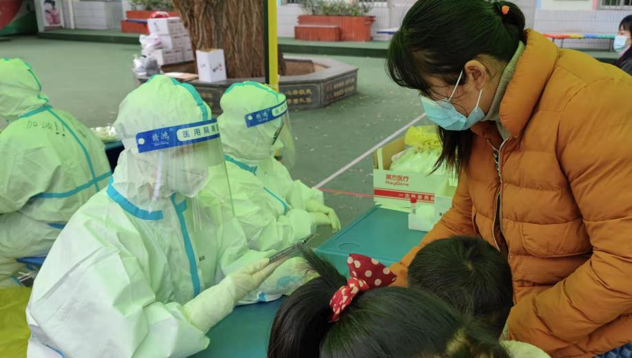 在医院的统一调配下,我们紧急集合,分头支援各个核酸采集点,我被分配到张苏滩社区核酸采集点工作。更换防护服,互相检查,反复确定,“你的手套拿胶带粘一粘”、“所有人员,好了吗!好了我们就开始”,大家互相加油打气,立即投入到紧张有序的核酸采集工作中。此时,核酸采集物资已到位,民警同志、社区志愿者有条不紊地维持秩序,人们已经排起了长长的队伍,大家翘首以盼,投射出渴望的目光,我们明白:此刻必须争分夺秒、快而稳地完成这项任务,为全体兰州市民送来“定心丸”,也确保感染人员早发现、早治疗,铸起生命至上的牢固防线。