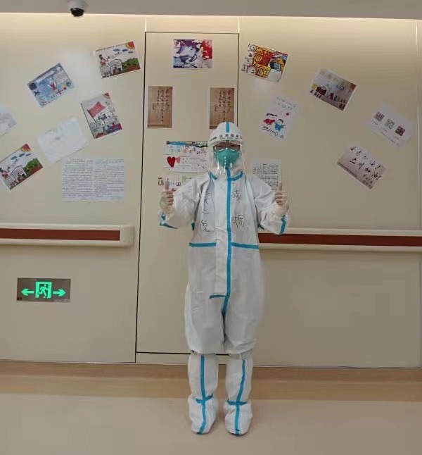 我们的患者很多都是一家人,先确诊的患者家属都很快被集中隔离、统一管理,在隔离的过程中被确诊的都会被送到同一个病区安排到同一个病房。从和他们的交流中知道他们除了担心自己,也会担心传染给其他人,患者们最多的就是对我们总是一直在说着感谢,当看到小朋友们从刚来的害怕,到可以在病区里愉快的跑动、玩耍,年龄大的患者从呼吸困难的重型转为可以下床走动的普通型,我们都感到无比的欣慰。每一天的努力都没有白费,患者们逐渐好转,开始散步、交流,他们的紧张也逐渐转为适应。尽管他们还是会担心出院之后的种种问题,但在病区的生活是舒适、安心的,这也让我们觉得所有的辛苦都是值得的。