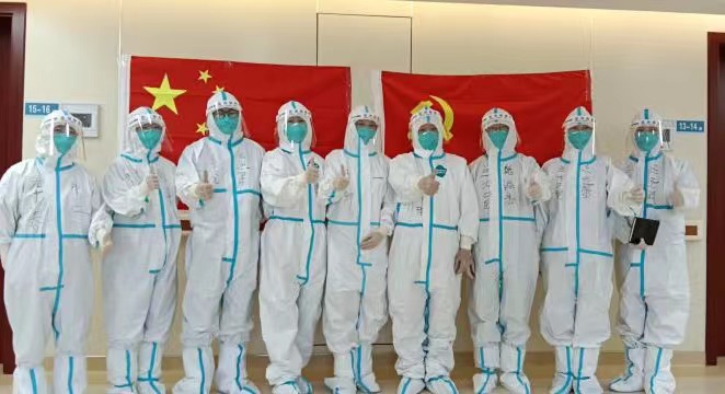 接下来的两天就是不断的练习,每天几十次的练习,让我的手臂肌肉酸痛,甚至无法抬起手臂,虽然很累,当时心里的想法就是一定要练,不管在任何情况下,都必须娴熟无误,这是对家人、对患者、对科室、对医院的负责。同时我还求助了第一批支援武汉的呼吸科赵艳师姐,师姐很热心,把她的经验及需要注意的细节还有新冠的最新指南都发给了我,并不断的鼓励和安慰我。经过培训,我做好了充分的准备,也相信自己一定会圆满完成任务。