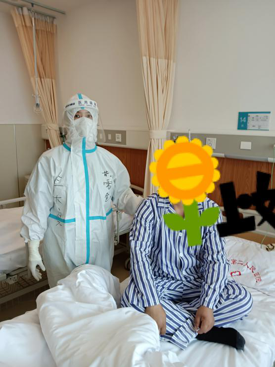 时间飞速流逝,每每忙至深夜,万籁俱静,我们依旧每两小时要进行血氧饱和度的监测,及时发现患者病情变化,协助医生作出治疗方案的调整。如果说作为一名医务工作人员内心的责任和抗击疫情的使命给了我巨大的决心,那么病房里开朗乐观的患者便是我莫大的动力,患者们的笑脸更是鼓舞我坚持奋斗的毅力。