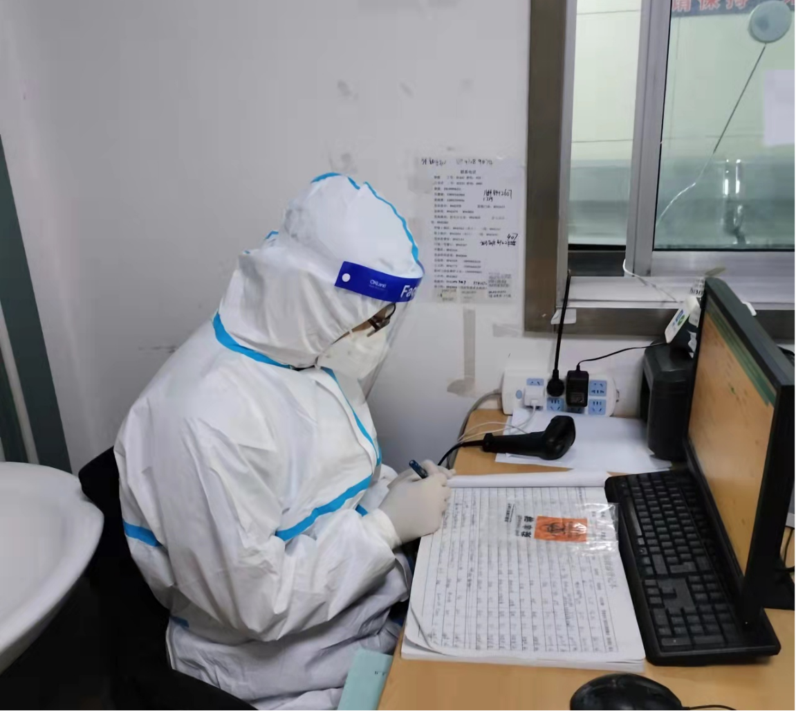 10月底,我正式进入发热门诊工作,在发热门诊各位老师的指导下,明确了自己的工作任务。每次上班我都会对前来发热门诊就诊的患者进行详细信息登记,核酸、抽血取样,安排前往方舱CT室进行检查和留观。看似简单的工作,却显示着很多的不平凡,急危重症患者的处理、小儿及躁动患者的标本取样,各种问题层出不穷,但是在发热门诊各位老师的配合下所有困难都迎刃而解。