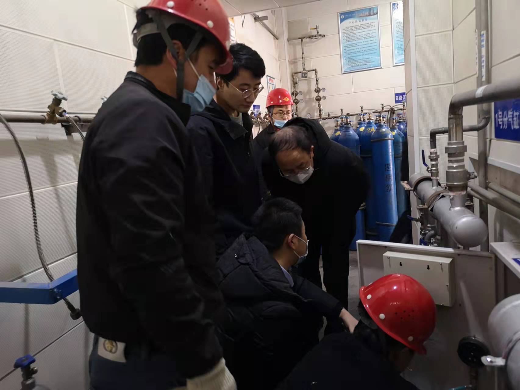 为保证医院集中供氧系统的安全稳定运行,确保发生疫情时制氧系统设备能满负荷投入生产,设备处抓住医院近期在院患者较少时机,于11月20日—21日开展更换供氧中心集中供氧分气缸工作,期间因暂停全院集中供氧,设备处还同时开展了供氧应急保障实战演练工作。