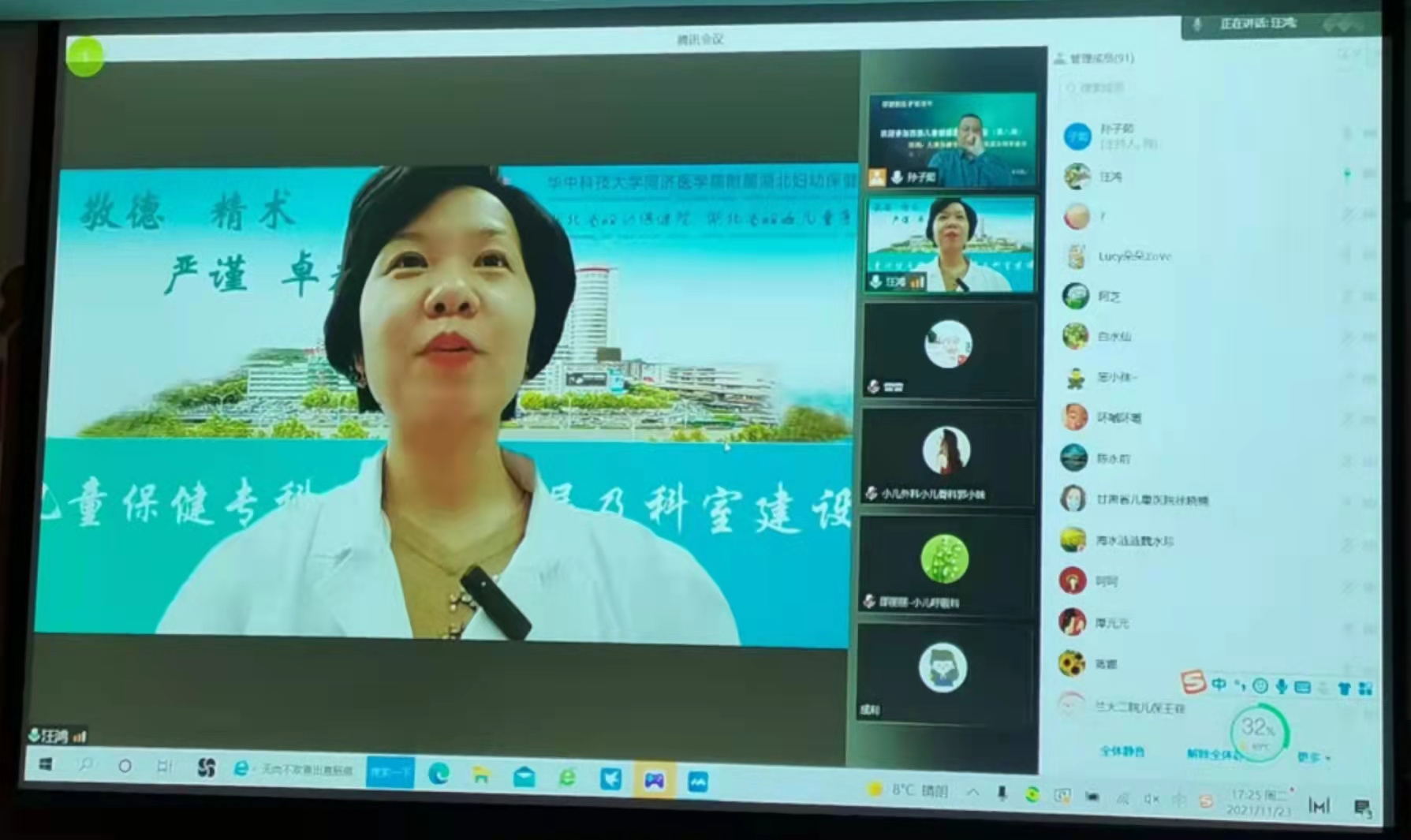 会议诚邀湖北省妇幼保健院儿保科主任汪鸿作了题为《儿童保健专科的未来发展及科室建设》的专题讲座。她就儿童保健学科的背景、科室发展趋势、儿童健康管理信息化建设、未来发展方向、典型个案分享等几方面进行了精彩讲解。汪鸿主任指出儿童是国家的希望、民族的未来,全社会对儿童保健工作的需求和期望与日俱增。目前儿童体格发育及心理行为问题是儿童保健学科的热点,科学养育照护是促进儿童健康的重要保障,儿童保健科必须改革创新,锐意进取,与时俱进,才能顺应时代和社会发展的需要。儿童保健科既要立足基础,又要积极转型,科室发展亚专业分化不可避免,比如学习困难诊疗门诊应运而生,为儿童早期学习提供科学的指导和帮助。