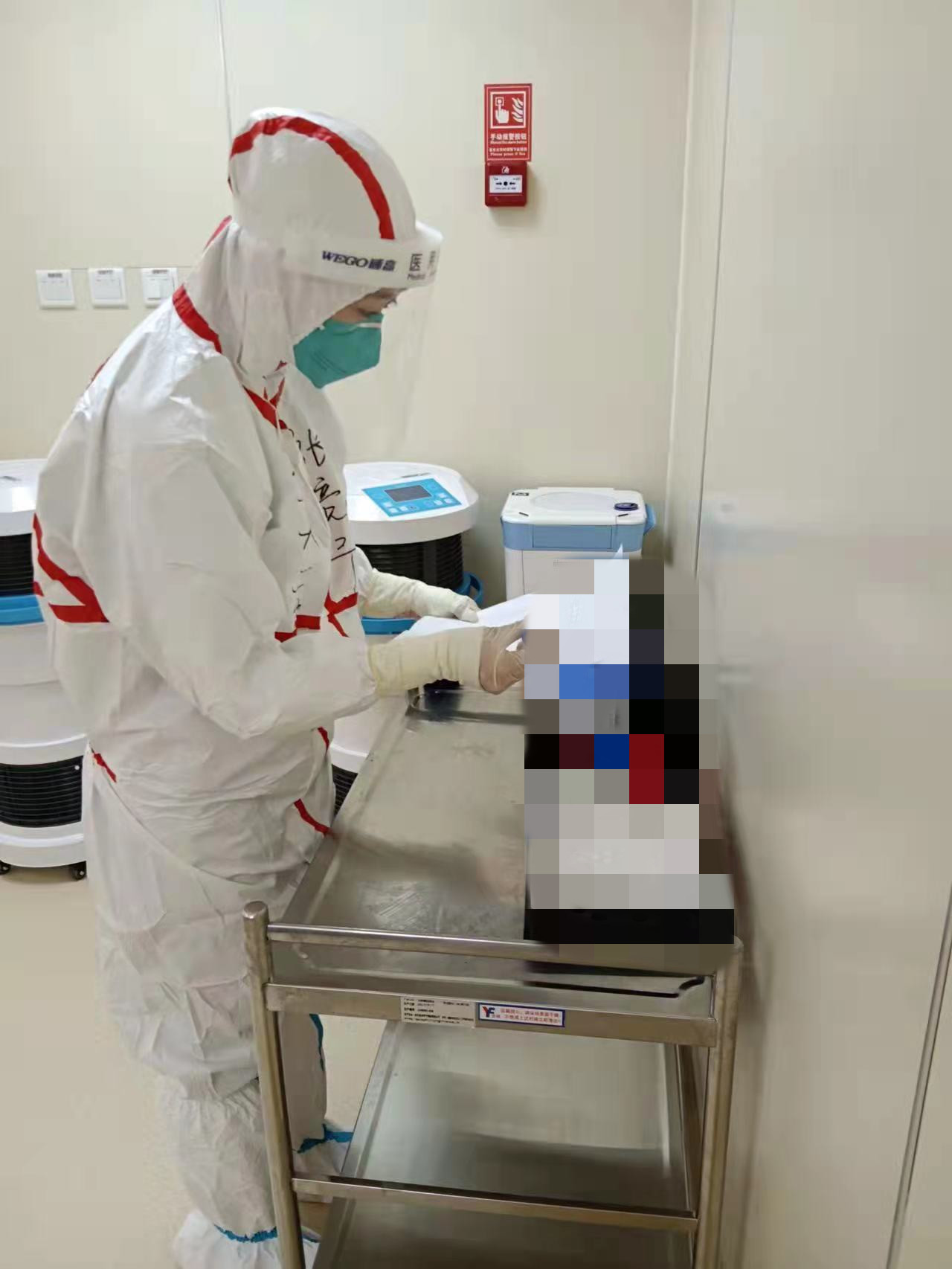 当进入定点医院穿戴防护服时,我不禁心头一紧,因为我深知,这身衣服所代表的责任和使命。随后,我们快速开展接管病区的相关工作。根据分工,我主要负责清洁区的工作,需要在同事们进入隔离病房前检查他们的防护服穿戴是否到位,及时与病房联系,为病区物资做好后勤保障工作,同时做好进入人员登记及清洁区消杀工作。短短几天我已熟悉全部工作流程,干起活来得心应手。