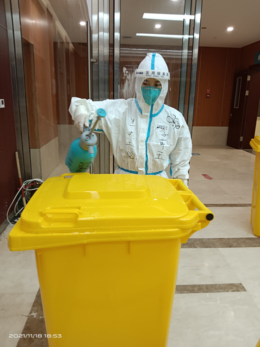 曾经在武汉的工作经历成为本次抗击疫情的宝贵经验。作为一名医护人员,在患者、群众、家乡需要的时候往前冲,是我们的使命和职责。11月11日,接到命令随医疗队进驻定点医院,参与新冠肺炎患者的医疗救治护理工作。在这里,每个小组内的老师都来自不同的科室,有着丰富的临床护理经验,便于工作中的相互交流,共同合作。大家都各司其职,相互协作,核对医嘱、监测生命体征、做好消杀等等,高效完成班内各项工作。每当看到出院时患者开心的笑容时,虽然需要忙碌的事情有很多,但身体上的疲惫比不上我们内心的喜悦。我们所做的努力,也得到了患者的极大认可。