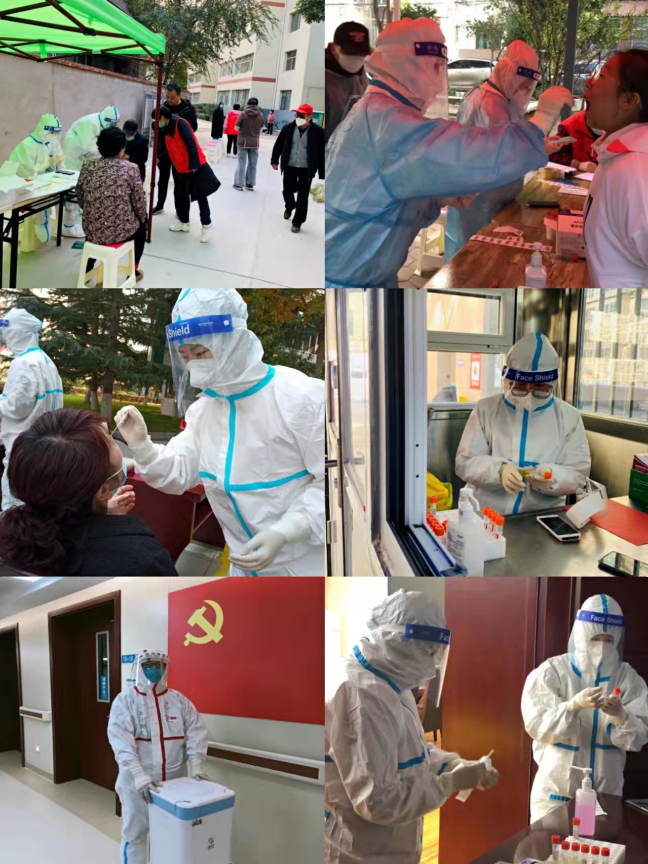 前后共调配10名护理人员进行外派支援,其中李玉红、景至颖、白豆、郑霞霞、徐芳、王晓梅、范东燕、赵莉云等8人先后参加培训投入社区、政府、商场等地进行核酸采集工作,陶娜被调配医院核酸采集点,吕佳经培训前往定点医院进行支援。面对病毒肆虐下不再宁静的金城,他们选择了逆行,夙夜坚守只为这个城市能回归往常的热闹与繁华。