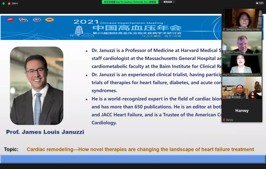 会议期间,心血管内科主任余静教授被邀请作了《产后及哺乳期的血压管理及心血管防治》《肾功能不全难治性高血压治疗要点》《难治性高血压的药物治疗探讨》《WHO成人高血压药物治疗指南解读》《Management of blood pressure in postmenopause women of hypertension》《肿瘤以及抗肿瘤治疗对血压的影响》等主旨的大会报告;此外,作为主持,余静教授通过国际连线美国明尼苏达大学Lillehei心脏研究所主任、心脏病学系主任Samuel C Dudley教授;美国哈佛医学院James Louis Januzzi 教授和中国医学科学院阜外医院心力衰竭中心主任张健教授、北京清华长庚医院马志毅教授、立博欧赔指数第二医院心血管内科三病区副主任王琼英就心力衰竭相关主旨发言做了热烈讨论。