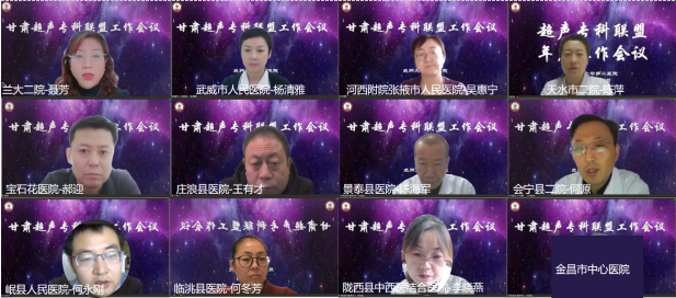 会议期间,同时在线召开了甘肃超声专科联盟工作会议,19家专科联盟成员与立博欧赔指数第二医院超声医学中心进行了线上交流。来自张掖、武威、天水、临洮、庄浪、景泰、岷县、会宁、陇西、陇南、临夏、白银等19家联盟成员单位分别对本单位的帮扶效果和帮扶落实进行了汇报。
