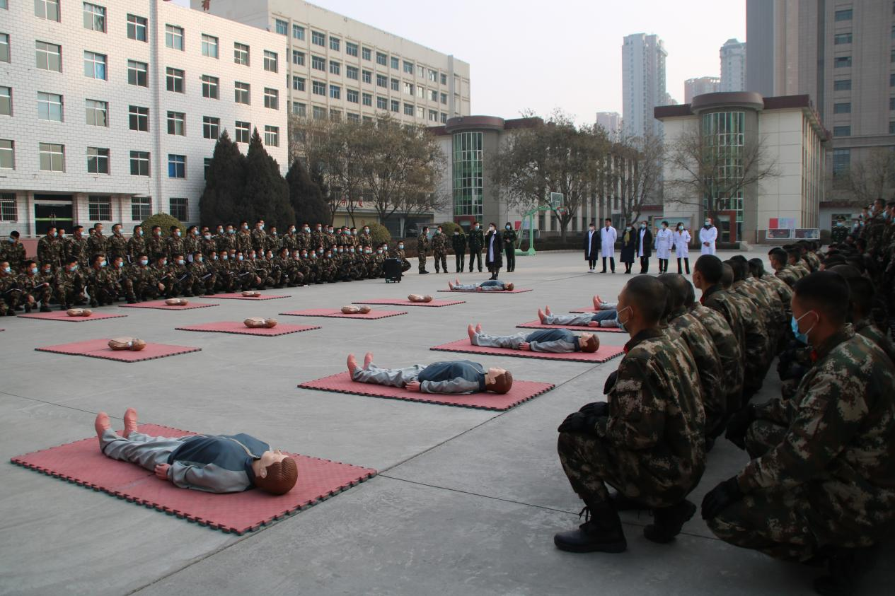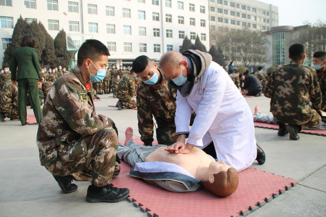 在专家们答疑解惑的同时,急门诊主任李自力为武警官兵进行了医疗卫生急救知识普及,向官兵们讲解了心肺复苏术、海姆利克手法的理论知识及操作的正确手法等,并细心组织武警官兵进行实际操作训练。
