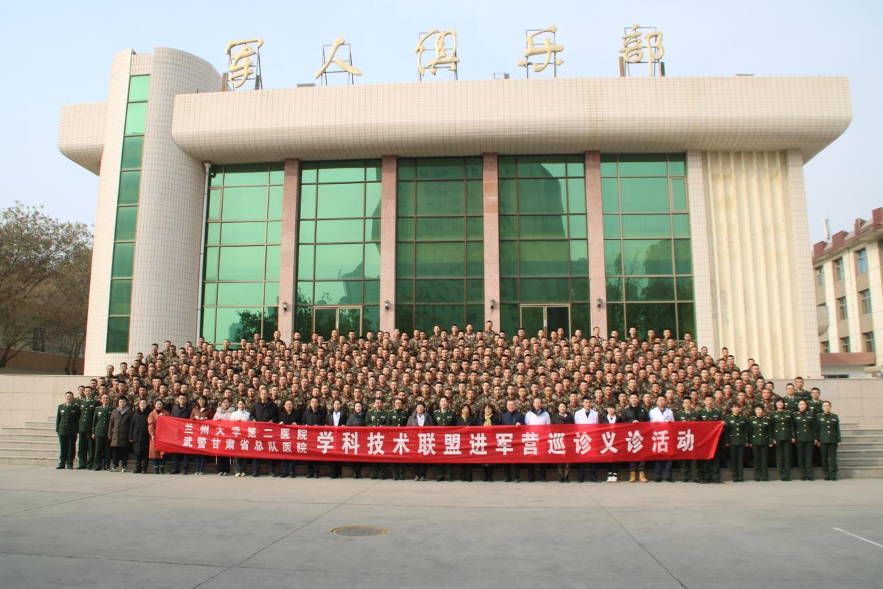 1月21日上午,兰大二院副院长张文芳带领急救中心、骨科、消化科、全科医学科、眼科、耳鼻喉科、超声医学中心、泌尿外科、皮肤科等专业专家及研究生处、干部保健处、护理部、发展规划处相关工作人员赴武警甘肃总队某支队,开展“医疗专家进军营,拥军义诊送健康——兰大二院师生走进武警部队开展义诊和急救知识宣讲”活动。