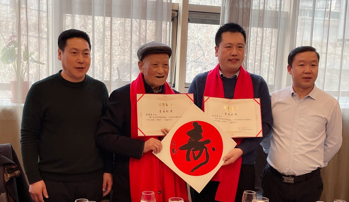 2022年,单得真(左二)与王宏伟(左三)同时被段渠村授予“荣誉村民”
