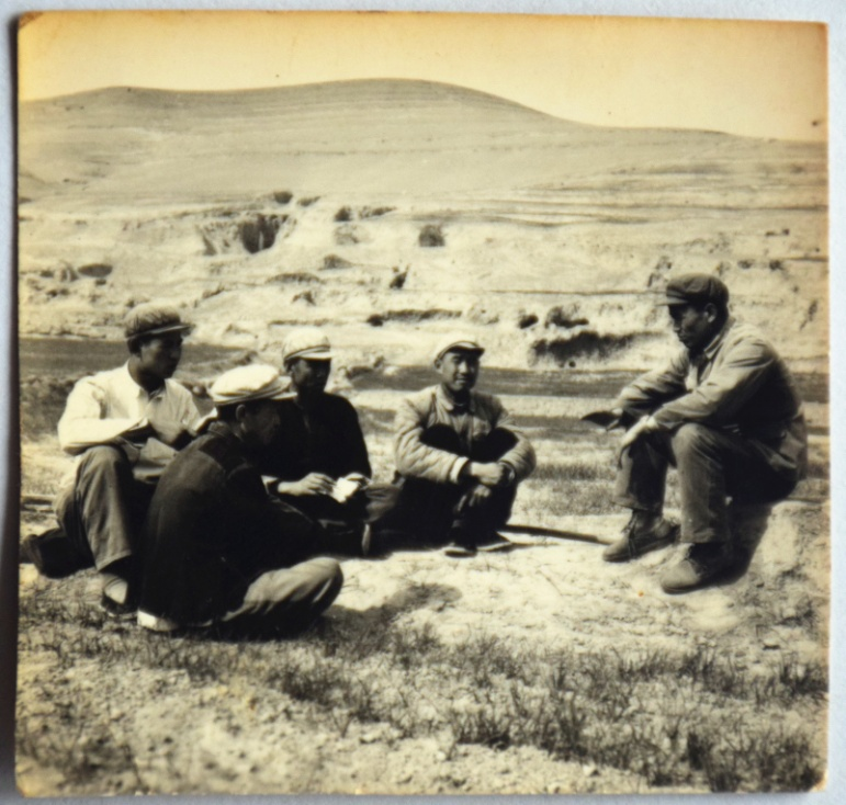 1974年,单得真(右一)在段渠村田间安排部署工作