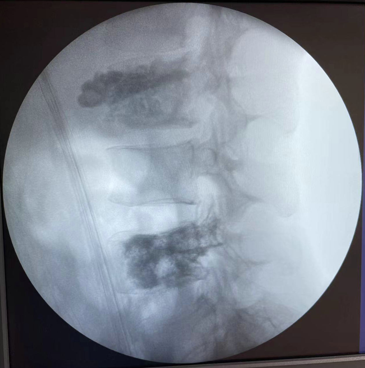 患者,男性,54岁。因渐进性加重剧烈腰痛伴严重失眠、活动困难半年收住入院。入院后,骨科三病区完善相关检查,王旭主任团队仔细分析患者病情,在全面评估和术前讨论后,针对靶向病变椎体,制定了微波消融联合椎体成形技术(PVP/PKP)手术方案并成功实施,术后患者症状明显缓解,现能自由下地活动。