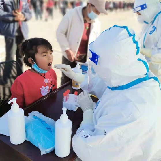 到达驻地后,各个采样地点的接送人员已经在宾馆楼下等候,我们采样队所有成员在短暂的分配房间后又马不停蹄的踏上了新的征程。新区地域宽广,队员们被分配到24个不同的检测点,而每个核酸检测点之间距离又很远,只能靠手机微信群联络掌握动向。当队员到达各个村庄的核酸检测点时,排队的长龙已经望不到尽头,村民们翘首以盼,看到我们的车开进村庄,很多人隔窗挥手表示欢迎,志愿者们似乎也有了主心骨。在队员们的协调安排下,村领导、志愿者们迅速布置场地,调整人员,火速开启了采集工作的序章。没有人提出是否要先吃饭,更不知何为饥饿,何为劳累,村民们服从安排,井然有序,志愿者们不辞劳累,全力配合。速度、友爱、团结在采集过程中体现得淋漓尽致,我们核酸采样队的全体人员不禁感叹:这就是中国速度,团结的力量吧!