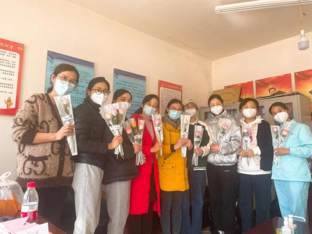 3月8日,国际劳动妇女节,一个属于全体女同胞的节日。早晨起来,我们就被铺天盖地的妇女节朋友圈刷屏,在临出征前,我们两个队长简短的祝福了各位队员妇女节快乐。执行核酸采样任务期间,我们接到了两个特殊的电话,一个是护理部副主任高祝英对我们的问候,同时为了让我们更好的做好防护给我们送来了消毒湿巾。第二个电话是新区农投集团的总经理马会英,他们想在特殊的日子里给队员带来一份惊喜,并协调酒店送到了各位队员的房间,在执行任务的过程中,志愿者也给我们送来了鲜花和祝福。医院领导的关爱和新区人民的关心让身处战疫前线的我们感受到了浓浓的温暖。当完成任务回到酒店,看到散发着清香的花束和甜甜的水果时,所有队员们都感受到了一种别样的暖意,也坚定信心,我们相信总有一天静待花开,疫情终散。