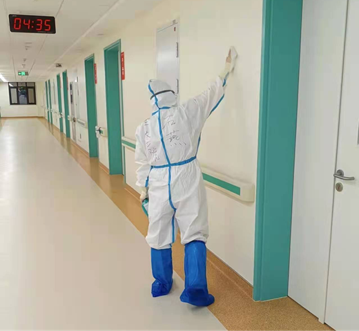 3月9日,我们抵达新区新冠肺炎定点救治医院,医疗队接管了隔离四病区并收治住院患者,经过院感培训、防护服的穿脱及严格考核后就投入到了有序的医疗救治工作中。