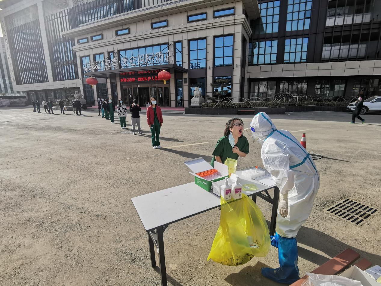 按照队员生活需求,为队员配送所需的基础生活用品14件/人。积极协调驻地所需的饮用水、餐食、体温计、手消液、医用外科口罩、手套、帽子等生活、防疫物资。医疗队抽调了2名精干护理人员做好每日驻地闭环管理人员与公共区域的环境物表采样工作保证驻地的院感安全。