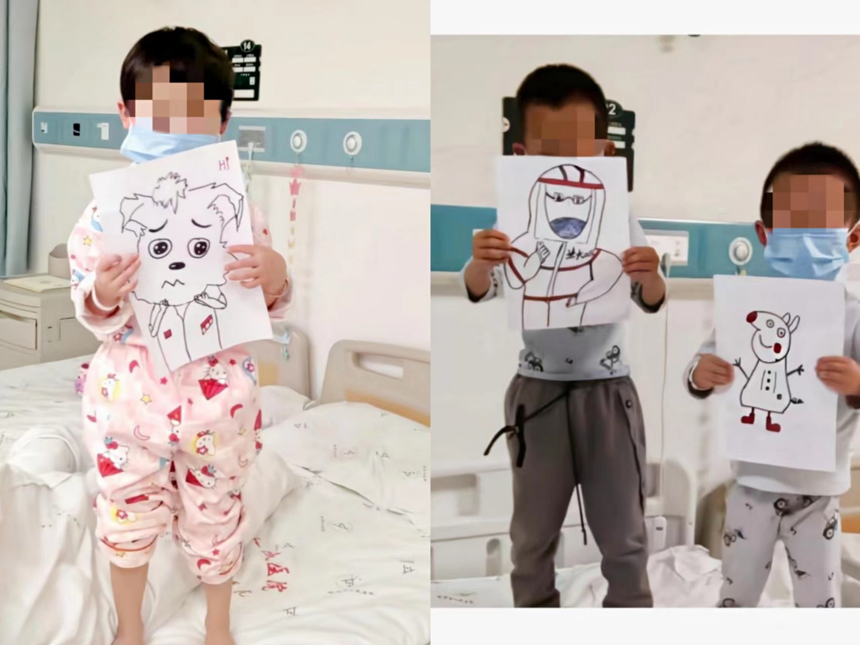 在隔离病区,每一位患者的情况各不相同。很多患者最需要的可能不是药物治疗,而是陪伴和安慰。从无知幼儿到耄耋老人,因为身在隔离病房,大家或多或少都会有些许失落和难过,我和同仁们会从患者角度出发,陪他们聊天、陪孩子游戏,同时力所能及的满足他们的生活需求。平日艺术细胞为零的我还为小朋友们画画,逗他们开心。人在旅途,都可能会遇到一些坎坷,但这一程有我们陪伴,明天会更加美好。