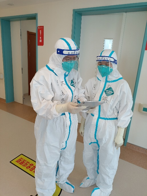 新区的春风似乎还没有来到,但驻地酒店人员的热情足以温暖整座城市。在这里,我们经过了严格的院前培训和考核:穿脱防护服、院感防控、病区环境熟悉等,并于次日顺利接管了隔离四病区,病区内有年少的幼儿,也有双鬓银发的耄耋老者。这是我第一次接诊新冠肺炎患者,心中不免有些紧张和恐惧,但看到病区一个个忙碌的“抗疫卫士”不停地消毒擦拭,为我们保健护航,我顿时放松了许多,我相信此刻恐慌的是病毒而不该是我。