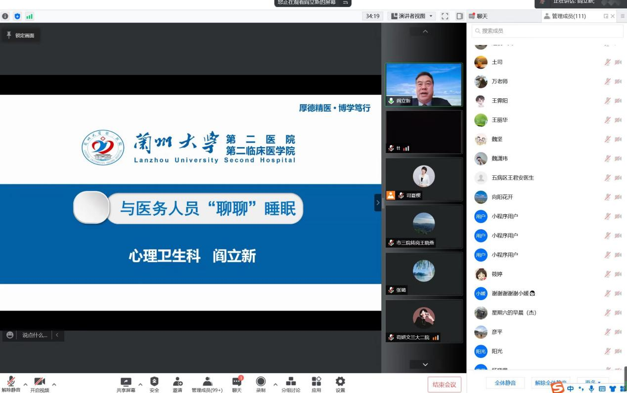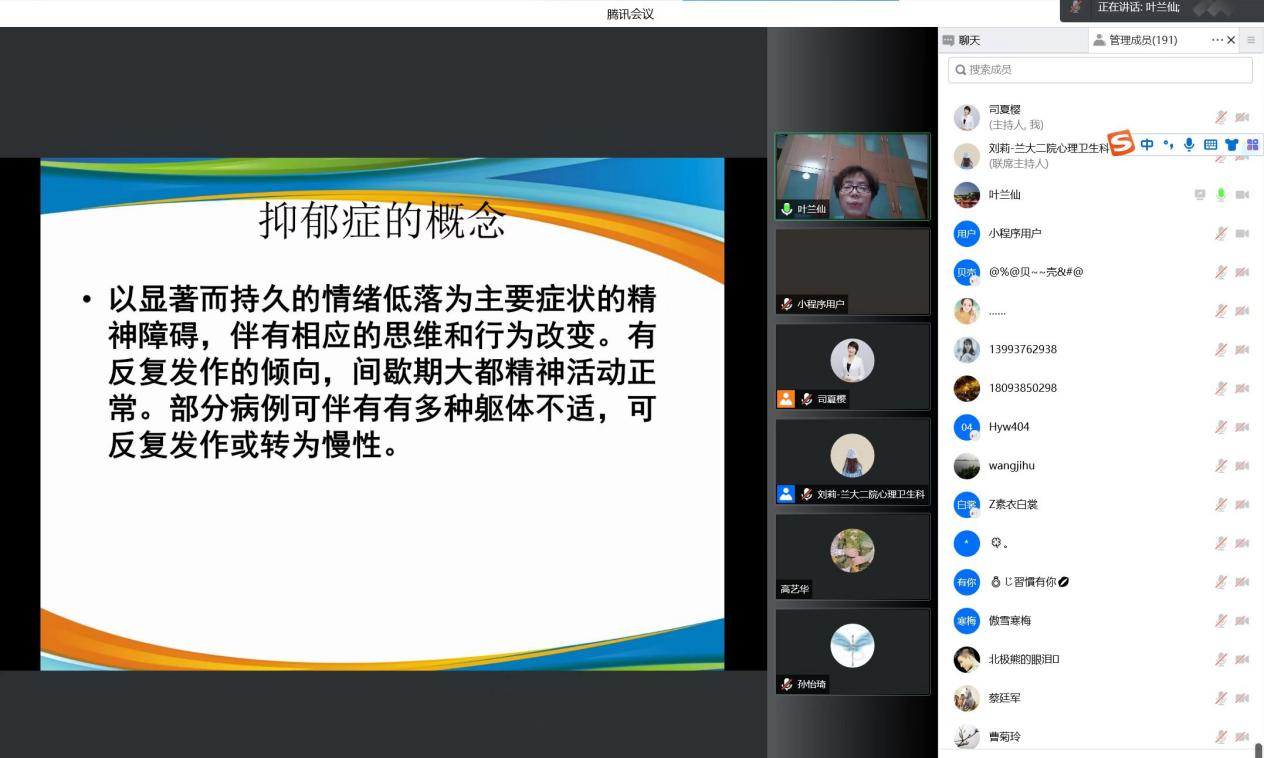 “健康身心,砥砺前行”——兰大二院举行抗疫一线人员心理健康讲座