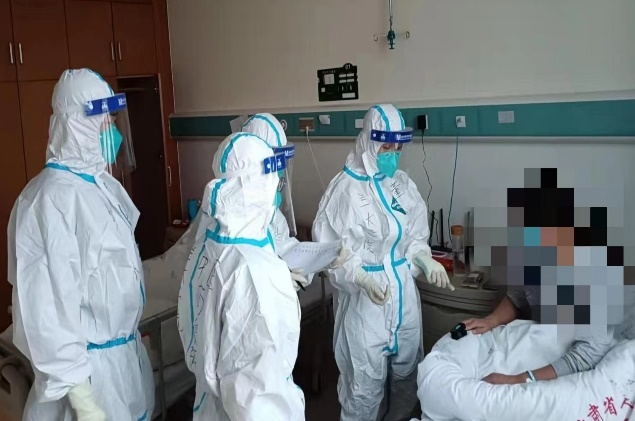 在定点医院,每天我们都按时查房、处理医嘱、书写病历,这似乎和日常工作一样,但身上的防护服时刻提醒着我们,院感防控是重中之重,一定要细心、谨慎,严格按照操作要求规范的完成各项工作。