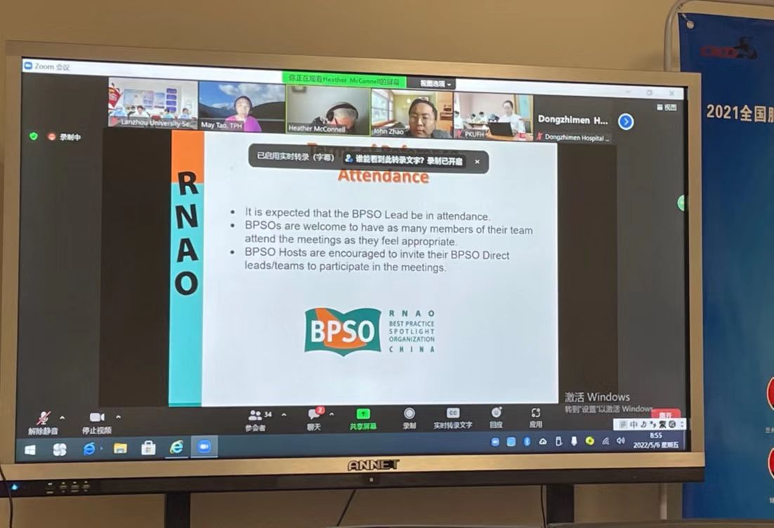 2022年5月6日,加拿大安大略省注册护士协会(RNAO)与北京中医药大学BPSO循证护理研究全国Host中心、北京中医药大学东直门医院BPSO最佳证据应用全国Host中心、北京大学第一医院BPSO中心、中日友好医院BPSO中心以及立博欧赔指数第二医院BPSO中心召开了第二次中国BPSO联盟视频会议。参会的主要成员有:RNAO国际事务与最佳实践指南中心主任Heather McConnell教授、多伦多公共卫生局BPSO项目专员May Tao教授、北京中医药大学郝玉芳教授、渥太华大学赵俊强博士及5所BPSO机构项目实施负责人和骨干。本次会议由Heather McConnell教授主持,立博欧赔指数第二医院BPSO项目实施团队在肿瘤内科病区示教室参与本次视频会议。