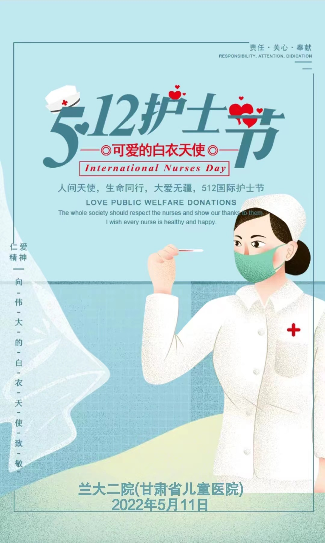 在第111个“5.12”国际护士节来临之际,儿童医院党总支献上护士节贺词:“儿童医院的护士姐妹兄弟们,祝你们护士节快乐,健康开心!你们从事着平凡、专业、不可或缺的神圣职业,患儿诊疗的每个环节都有你们忙碌的身影,医学事业的任何进步和发展都有你们默默的奉献。新冠肺炎疫情常态化防控,大家闻令而动,逆行抗疫前线,用实际行动诠释了白衣天使的使命与担当!向你们道一声辛苦了!真诚祝愿护士兄弟姐妹们身体健康,阖家幸福!开心快乐!”
