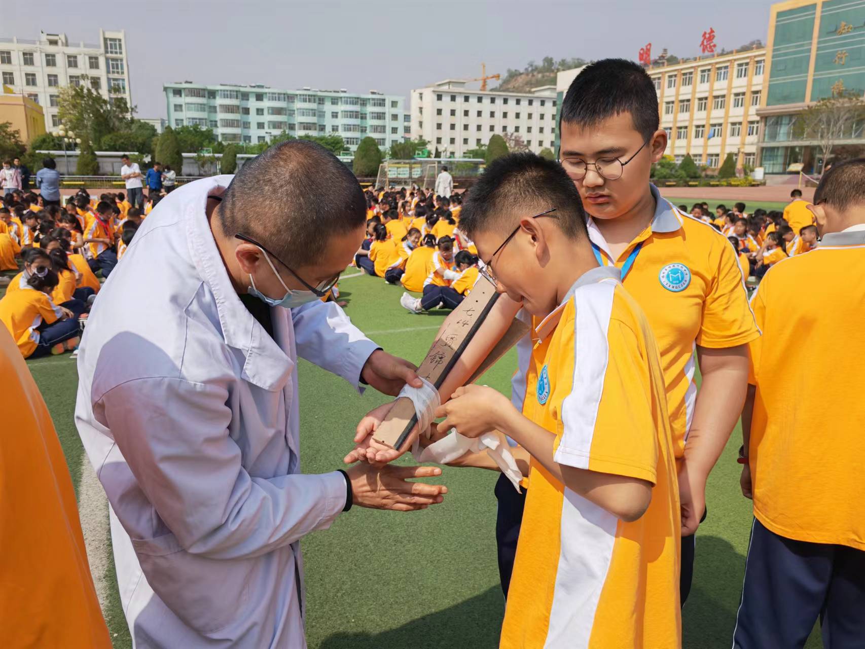 活动内容丰富,涉及防暴恐培训与演练、地震灾害与应急避难处置、应急逃生与防踩踏演练、消防应急救援演练、医疗应急救援、伤口应急处置与包扎、海姆立克急救法演示、灭火演练等。临洮县医院急诊科主任孙林带领兰大二院对口帮扶临洮县人民医院医疗队安宏主治医师等人,现场讲解演练心肺复苏术、头部伤口包扎、骨折现场固定包扎、海姆立克急救法等急救知识。