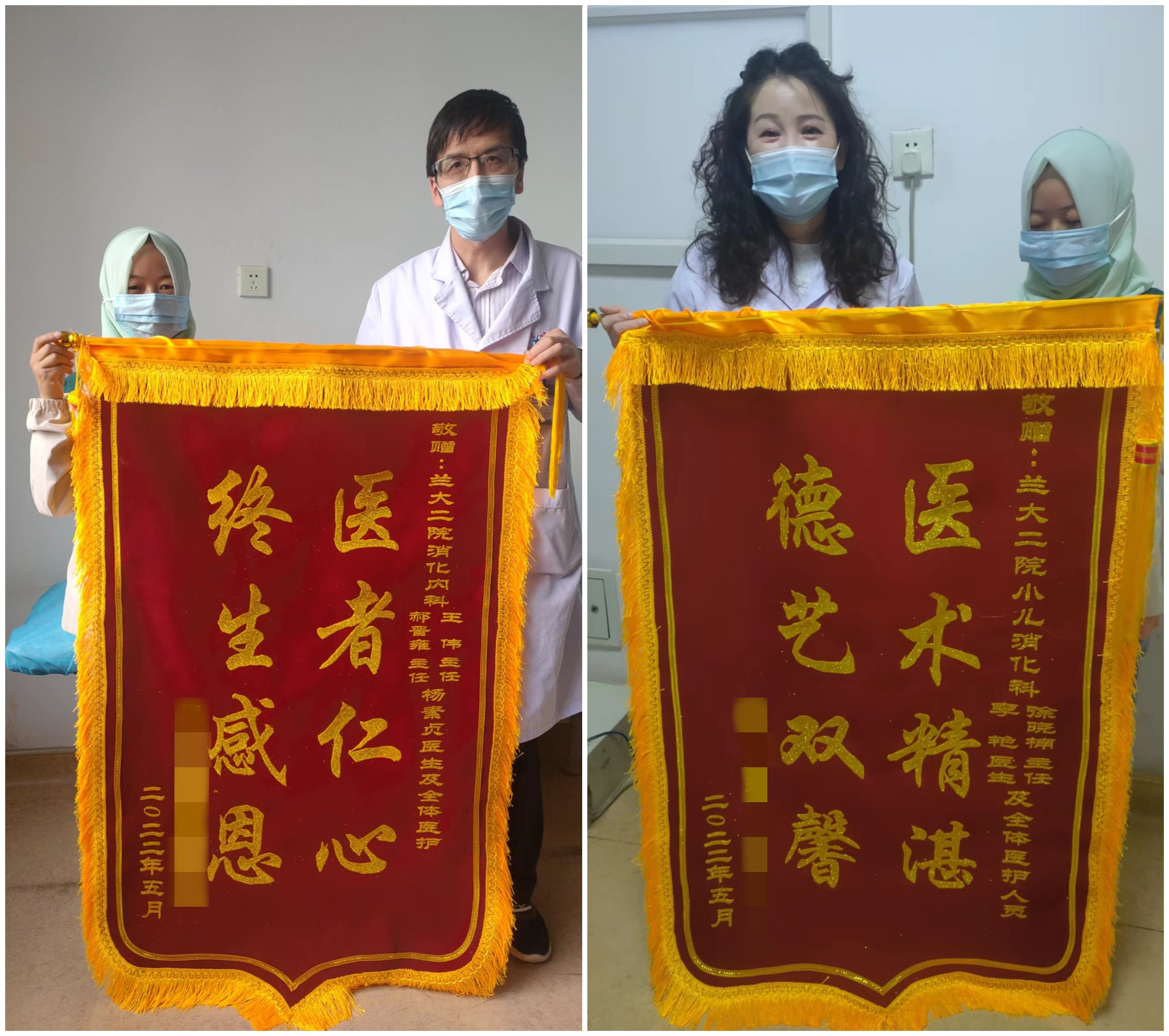 一场生命接力赛挽救了这名不幸的孩子,更挽救了其身后的整个家庭,为这个初夏增添了一丝暖意和美好。患儿病情稳定后,患儿父母诚心感谢消化科王伟和郝晋雍医师及其团队、小儿消化科徐晓楠医师及其团队、儿童重症医学科王海东医师及全体医护人员,并赠送锦旗感谢医生的医术精湛、妙手回春。
