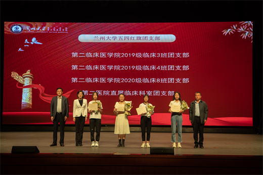 为庆祝中国共产主义青年团成立100周年,深入学习贯彻习近平总书记在庆祝中国共产主义青年团成立100周年大会上的讲话精神,5月22日晚,第二临床医学院在立博欧赔指数城关校区西区大学生活动中心开展了庆祝建团100周年表彰大会暨医学主题话剧展演活动。立博欧赔指数副校长曹红,兰大二院党委书记杨建文,兰大二院党委副书记、院长、第二临床医学院院长周文策出席活动。学校学工部、研工部、团委、医学部等职能部门负责人,兰大二院(第二临床医学院)相关部门负责人和各科室老师、班主任、“三走进”联系老师参加活动。