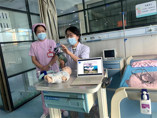 本次培训邀请儿童重症医学科副主任医师杨志国、新生儿科主治医师张亚婷现场模拟示教,培训内容为儿童心肺复苏、新生儿复苏、院前急救、医护急救配合等方面的细节和注意事项。培训结束后,儿科门急诊护士长张世梅带头演练,大家纷纷进行练习并探讨日常抢救中遇到的疑惑和误区。