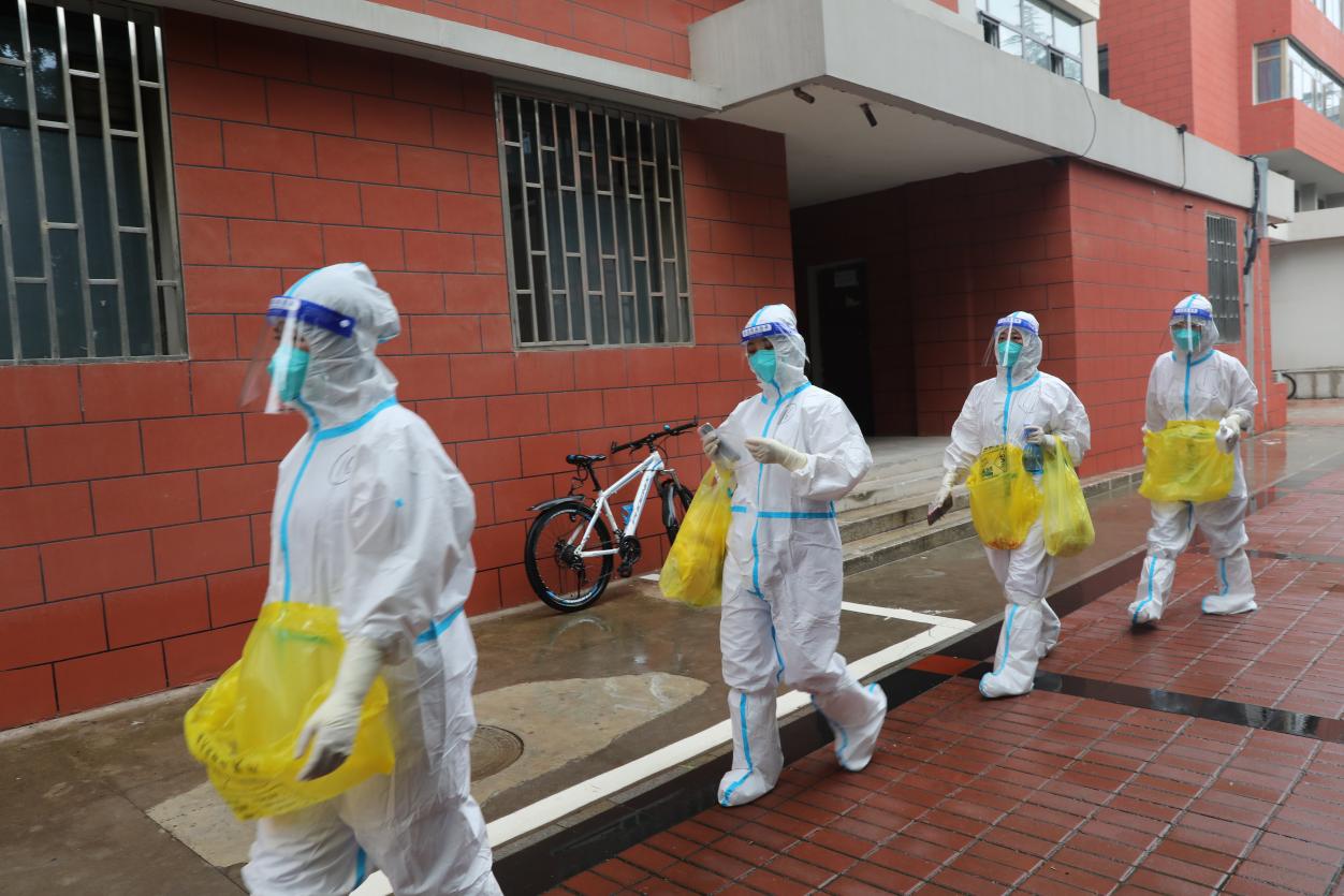 紧迫的疫情催促每一位医务工作者与时间赛跑,从协调转运物资、粘贴试管码到采样人员所需的全部防护物资,校医院全体值守人员和医疗队队员每天不但需要细心准备每一轮全员核酸检测所需物资,还要为重点人群和漏采人员进行核酸采样,开管、扫码、采样,同样的动作他们每天重复数百次。在炎热夏日全副武装,即便汗流浃背、累得就要抬不起手来,他们也始终坚守岗位。