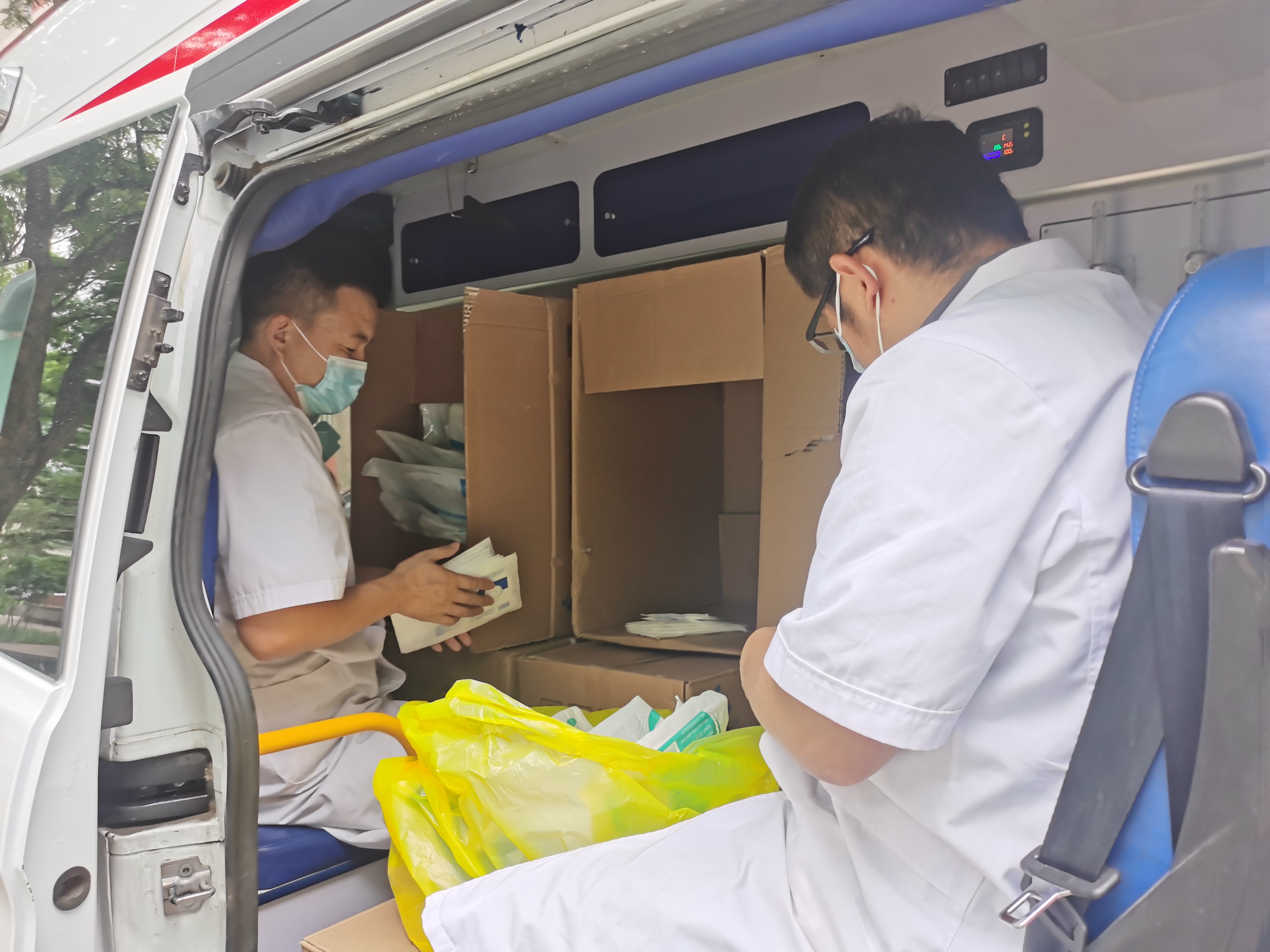 此外,救护车执行24小时值班制度,转送发热病人和急症患者、送检核酸标本、拉运防控物资。一个电话,救护车就要出现在用车现场,他们快速的反应只是为了与时间赛跑,他们握准方向盘只希望疫情早点结束,他们行驶的是责任,奔跑的是生命线。