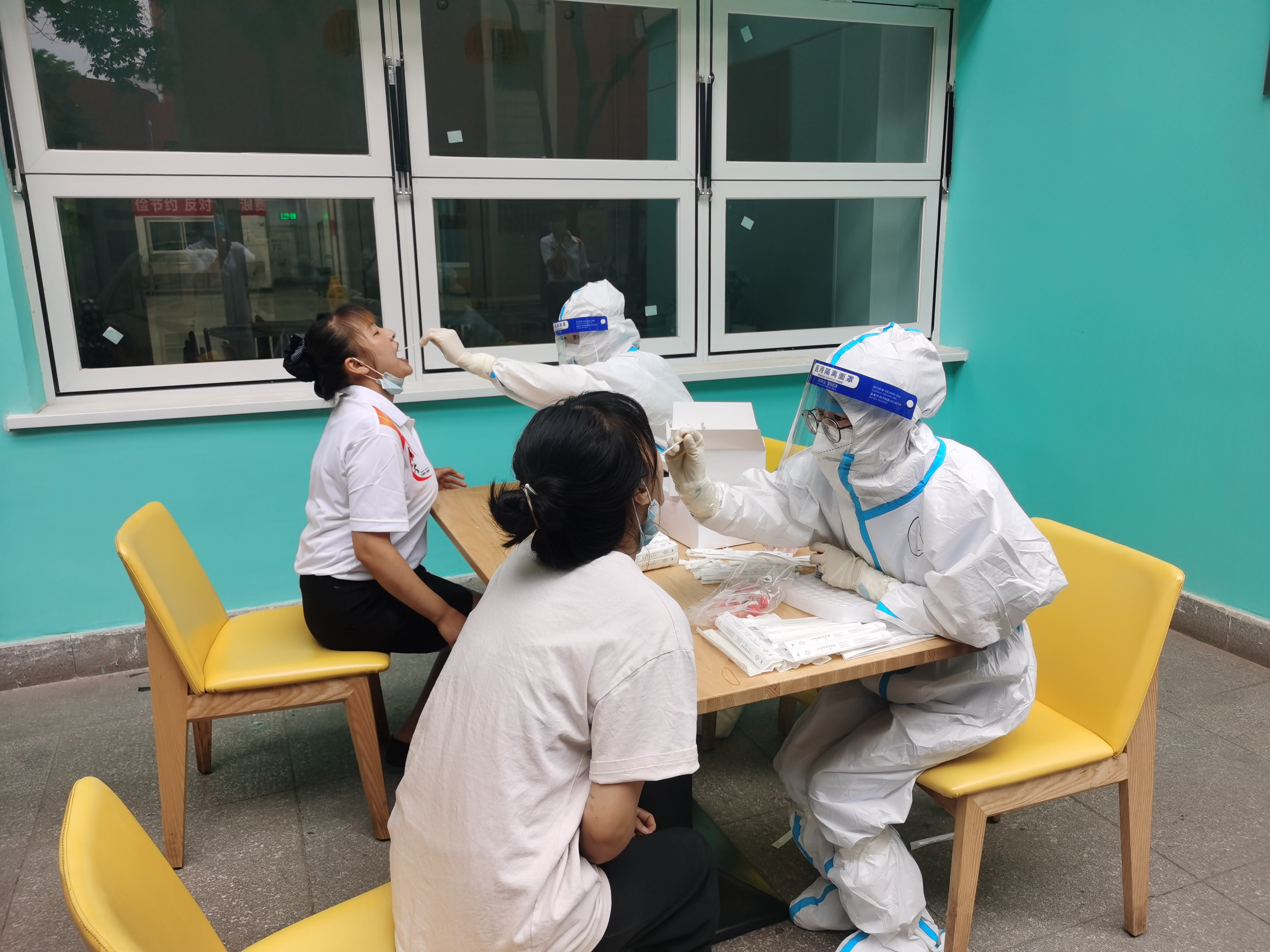 医疗队队员以患者安全、感控安全、医护安全为出发点,充分发挥主观能动性,及时发现问题、补足短板,坚持合力共为,整体提升服务水平。他们不畏酷暑,高温下“全副武装”,挥汗如雨,克服种种困难,努力做到不漏一人,与校医院医务工作者并肩作战,全力协助完成全员核酸检测,切实构建起学校疫情防控的坚固屏障。