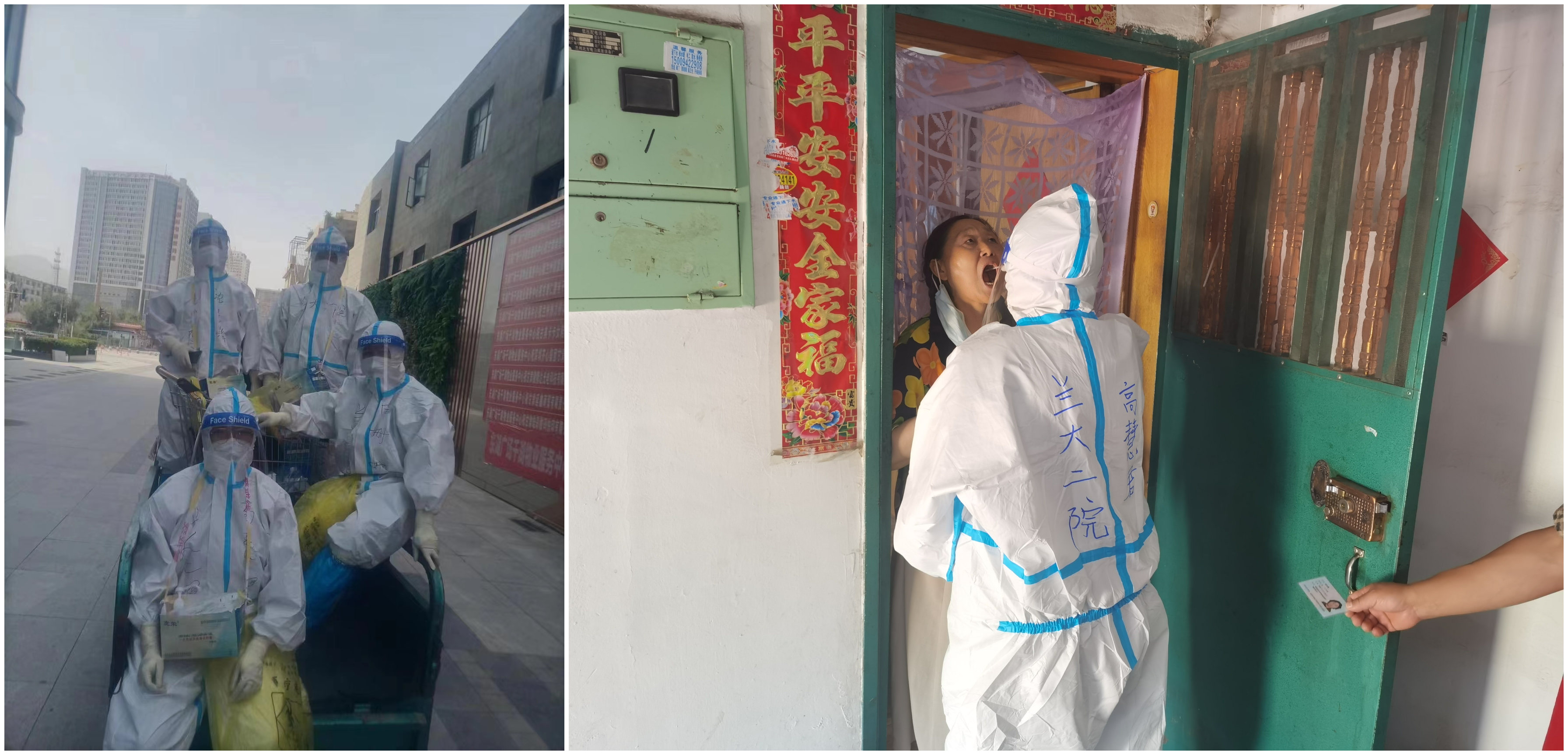 疫情又一次悄然而至,7月19日,兰大二院紧急号召配合兰州市核酸检测“敲门”行动。作为一名党员我义不容辞,即刻报名参加。这次的行动非常迅速,所有志愿参与的人员1小时之内到岗、领物资,2小时之内出发。看着统一着装的同事,口罩虽遮住了面庞,却遮不住眼中闪闪的星光,认识或不认识,走向不同的车,奔向未知的路,一股惺惺相惜之情涌上心头。