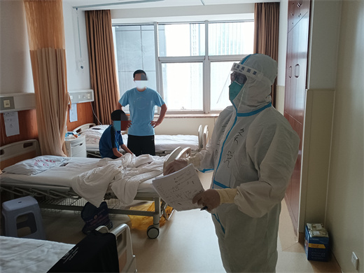 今日已是我和队友们战斗的第六天了,在大家的共同努力和默契配合下,病区总共接收了48名患者,让我记忆最深刻的一位患者,虽然没有家人的陪伴,但每天都会积极配合治疗,查房时还会向我们医护人员表示感谢,还告诉我们以后也要当一名白衣战士。