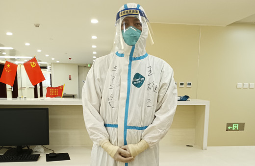 一阵忙碌之后,终于可以稍稍歇口气,等待其他任务的安排,此时眼镜压得鼻梁疼、耳朵被嘞的疼,也不敢用手去调整,只能强迫自己转移注意力。正想休息调整一下身体的时候,一个患者因为过于恐惧在门口喊我,我给他打气、为他加油,告诉他新冠没有那么可怕,请他相信我们可以帮助他们,当时我的心里说不出来的心酸,那一刻我告诉自己,要把我能尽到的关爱全部奉献出来,让患者尽管放心。