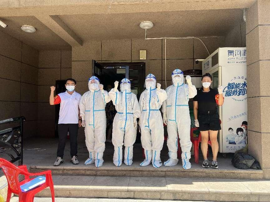 从出征到现在,采集核酸已有两周时间,我们的足迹遍布东岗街道、皋兰路街道、雁北路街道、九州开发区、靖远路街道、伏龙坪街道等多个高风险封控区域,穿过城市的大街小巷、也爬过崎岖的山间小道,上过没有电梯的八层老楼、也进过村里的农家院落,感受着烈日的炙热烧烤,也经历过瞬间而来的狂暴雨,但我们从未退缩、从未胆怯。每天腰间绑着黄色垃圾袋,一手拿试管、一手拿棉签,为不便出行的爷爷奶奶及产妇姐姐上门采集核酸,送上温暖,不断地重复着同一句话:“张大嘴,啊……”。看着群众排队人数的逐渐减少,听到一声声“你们辛苦了”“太感谢你们了……”心暖如阳,此刻我早已忘记防护服下湿透的衣服和接近透支的疲惫的身体。穿着今生穿过最美的套装,在36.5度的高温下用36.5的心为每一位居民服务着。