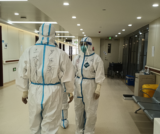 凌晨1点50分,我们提前10分钟到达病区,看着清洁区护理老师忙碌的身影,测温、查健康码、信息登记,在老师的监督下,戴帽子口罩,穿上防护服,因为大家穿得都是一模一样的大白装,所以写上自己的医院及名字,今天的护理老师也是个有爱的小姐姐,给我背上画了一个可爱的笑脸。准备好今天值班可能需要的物资,进入病区后我就进入了自己的战场。